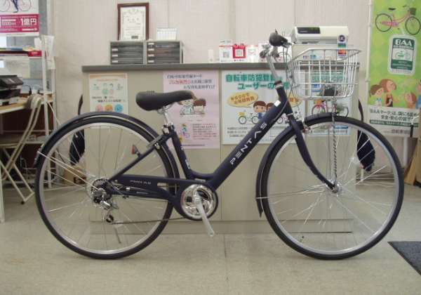 こんにちは、セオサイクル一ノ割店です。 今回ご紹介する自転車はこちらです。 サカモトテクノ ペンタスライト 27インチ アルミフレーム 外装6段ギヤ LEDオートライト