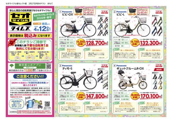 こんにちは西葛西店です! お買い物向けモデルの電動自転車! 在庫状況のお知らせです! ※只今チラシ期間中~! WEBチラシはコチラから! https://www.seoc