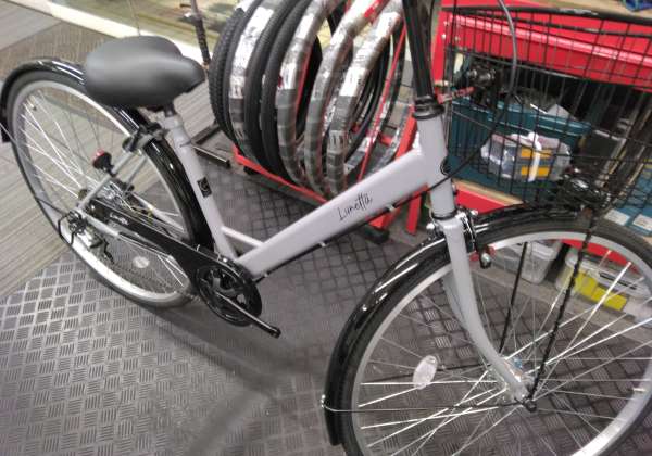 こんにちは‼市川大野店です‼ 新商品のご紹介です‼ 「大日産業 ルネッタ タウン」です‼お買い物や通勤通学にもおススメの自転車です‼ 自転車のスペックは @26インチ @外装6段ギア @オートライト @カートリッジBB @跨ぎやすいフレーム 外装ギア…