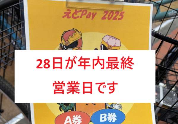こんにちは西葛西店です! 手元に残っている、 えどPay(PayPay商品券) 江戸川区プレミアム商品券 有効期間ご存じですか?! …の前に、 当店の年内最終営業日、ご存じですか? 今年の12月28日まで! 28日までですよ~! &…