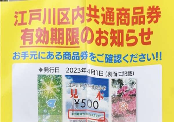 こんにちは、西葛西店です。 今お手元に 「江戸川区内共通商品券」 「江戸川区こども夢商品券」 をお持ちのお客様、有効期限はご存じですか? 商品券の真ん中あたりに有効期限が印字されています。 今一度お手持ちの商品券の有効期限を ご確認くださいますよう、お願い致します。…