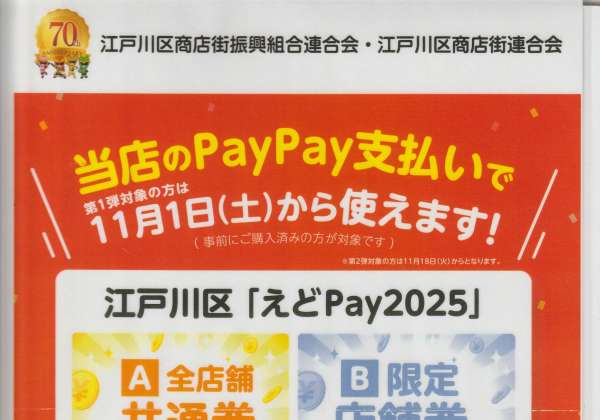 こんにちは、平井店です。 本日より、えどPay2025、いよいよスタートです!! 利用期間:2025年…