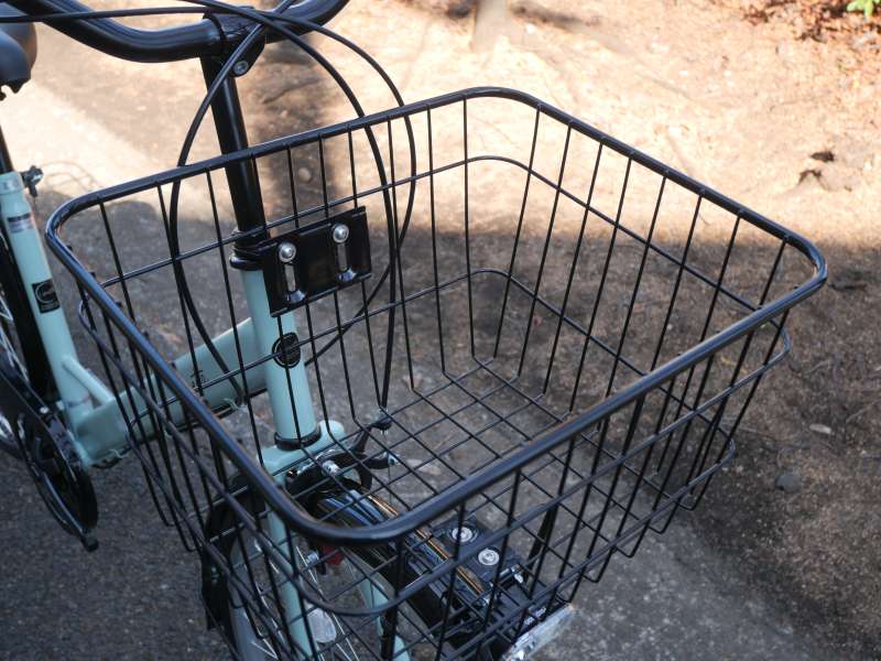 大型の前バスケットは幅38cm×奥行き32cm×高さ22cmほどのサイズがあり、丈夫さにも配慮された造りになっています。荷物を多く載せても安心感があります。
