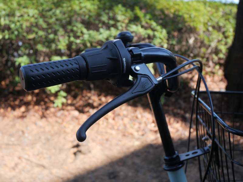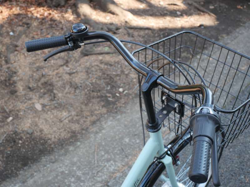 ハンドル形状は、お買い物用途の自転車として標準的な設計です。