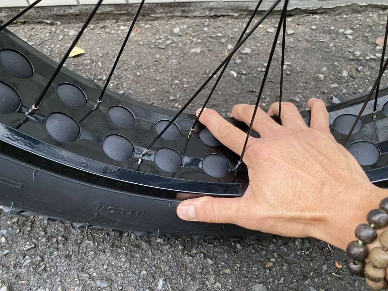 ホイールに肉抜き加工がされている為です。