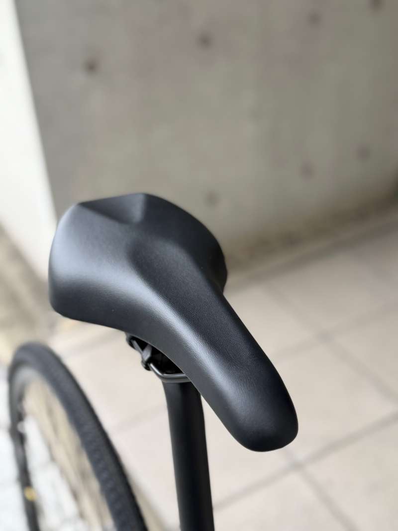 サドルはとても興味深いものが付いています。ロードバイクテイストですが、とても柔らかく座り心地がいいです!