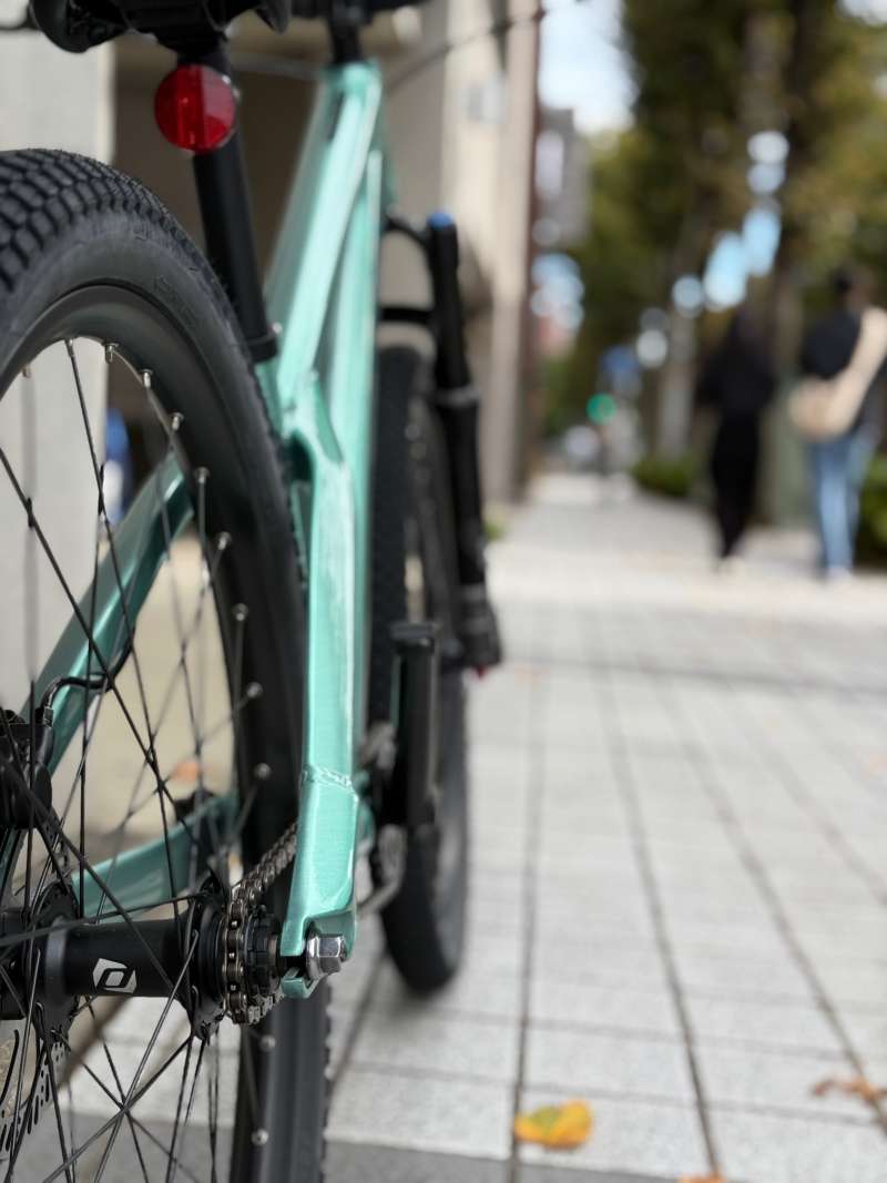 実はわたくしも20代の頃、ジャンプに憧れてこのジャンルのMTBに乗っていました。当時ダートブロスというカッコイイ二人組がいたんです。しかし、小学生の頃飛び込み前転ができなかったワタクシは、自転車でも飛ぶことはできませんでした…当時のMTBとは比べ物にならないくらい高剛性のフレーム形状につい見とれてしまいました。