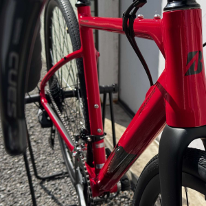 前傾姿勢がキツすぎないアップライトなポジションと、アルミ特有の「硬さ」を抑えたフレーム設計(形状)と幅広肉厚サドルで、初めてのロードバイクでも長距離を楽しく走りきることができます。