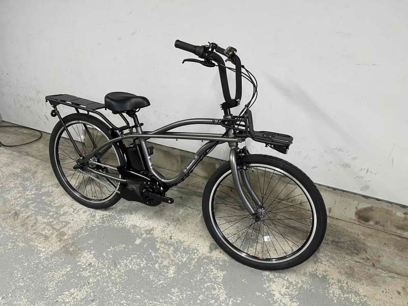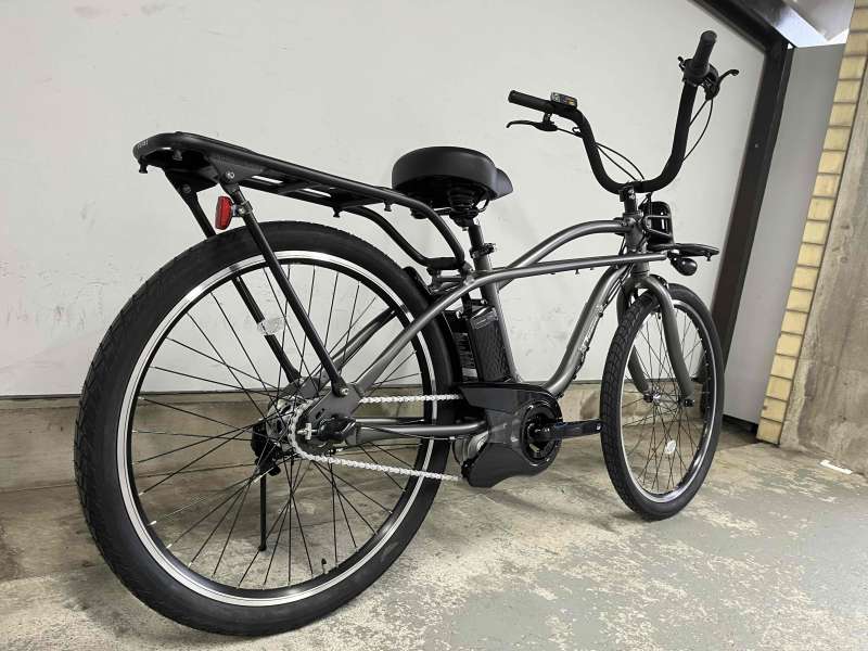 ビーチクルーザースタイルのアシスト自転車。