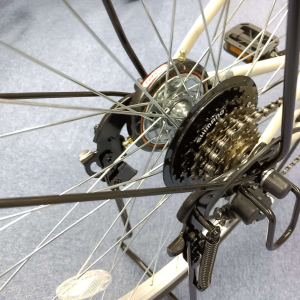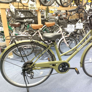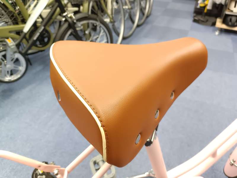 今回ご紹介する中で値段を1番抑えている車体ですが、後ろブレーキが構造上音鳴りが発生するバンドブレーキ(街中でたまに聞くキ~という音です)サドルがノーマルのサドルで、パッドが少なく座り心地の好みに差が出ると思います。