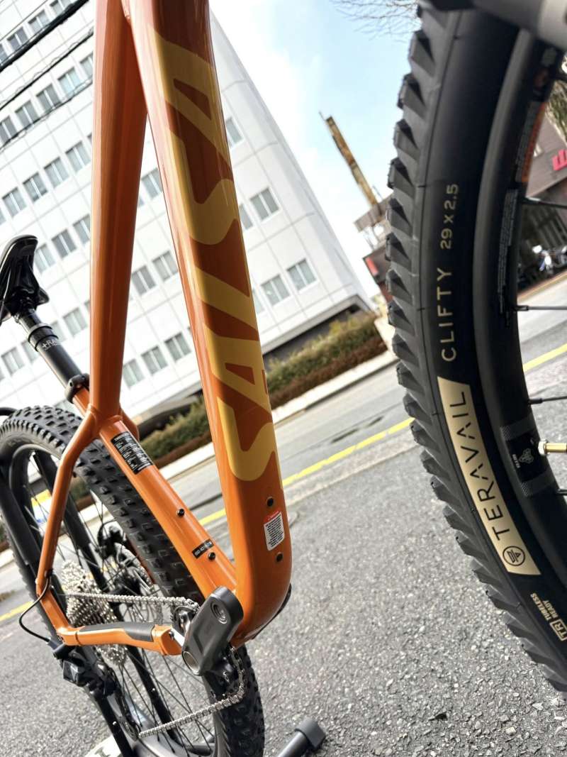 ブランド名はダウンチューブの下に入ります。タイヤはTERAVAIL CLIFTYの29x2.5