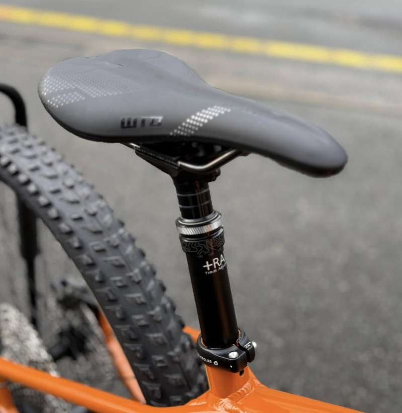 ドロッパーももちろん標準装備。またこれが優れモノでTranz XのYS105 RADというモデルなのですが30㎜のトラベルアジャストがついております。今まででしたらドロッパーのストロークが合わなかったら、新車なのに買い替えが必要でしたが、30㎜の調整幅がありますので、色々な方にそのままで対応できます。