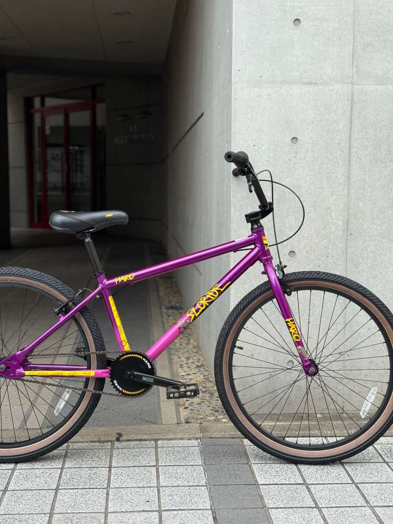 26インチのBMXクルーザーです。タイヤが太いので27インチの走行性を持っています!ペダルの漕ぎ出しは軽く、走り出すとすーーっと進んでゆくくフィーリングはBMXクルーザーならではでは。本当に街中をクルージングしやすいです!写真より実物はもっとカッコイイのでぜひ見にいらしてください!