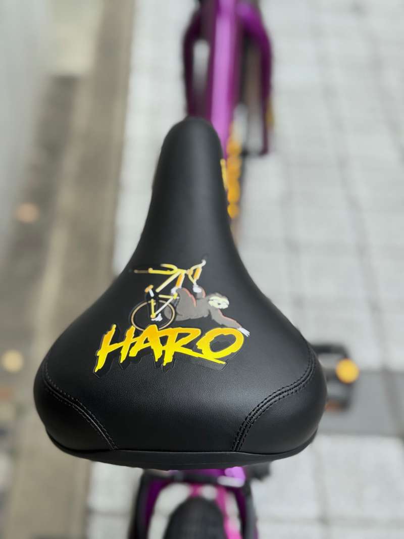 HAROらしいデザインのサドル。小さくて硬そうなのに全然痛くならないのが不思議です。