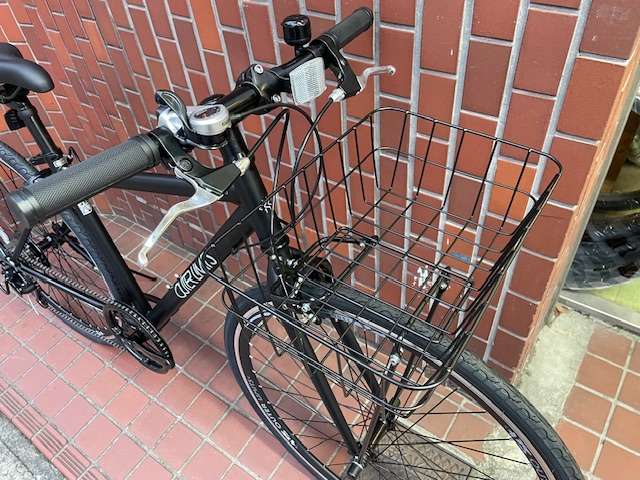 小ぶりですがカゴもお取り付け出来ます!ちょっとした荷物が置けて便利!