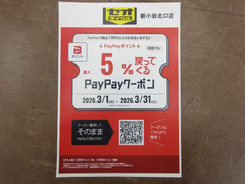 ペイペイポイント最大5%戻ってくるクーポン配布中!