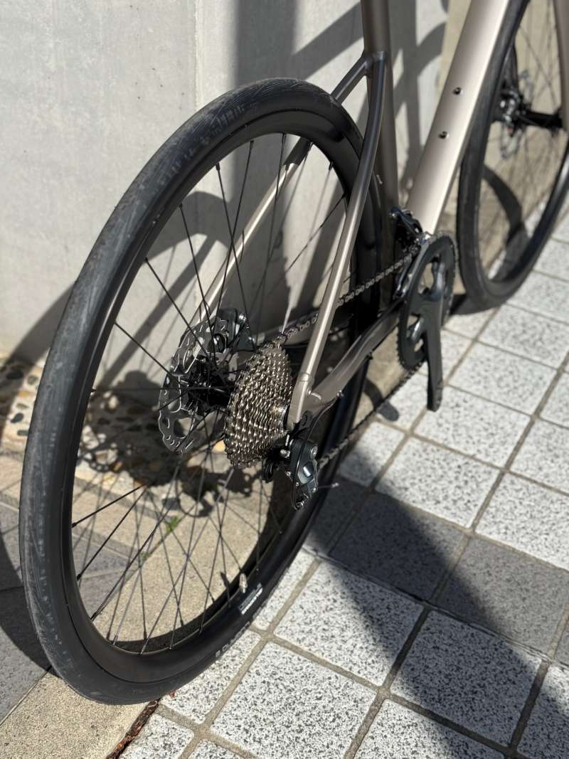 まずはアルミロードバイクと思えないスムースな美しさ。ワイヤー類が全て内臓式なせいもありますが、とにかくペイント&デカールが美しいです。