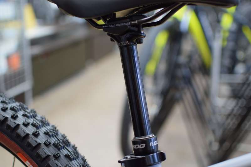 ホイールサイズ、元々は29インチでしたが足つきの良さを考え「27.5+」にタイヤはカラーをあわせて「TANKEN GEKKOTA」を勝手にチョイス。完成車には未装着だったドロッパーシートポストも取り付けました。