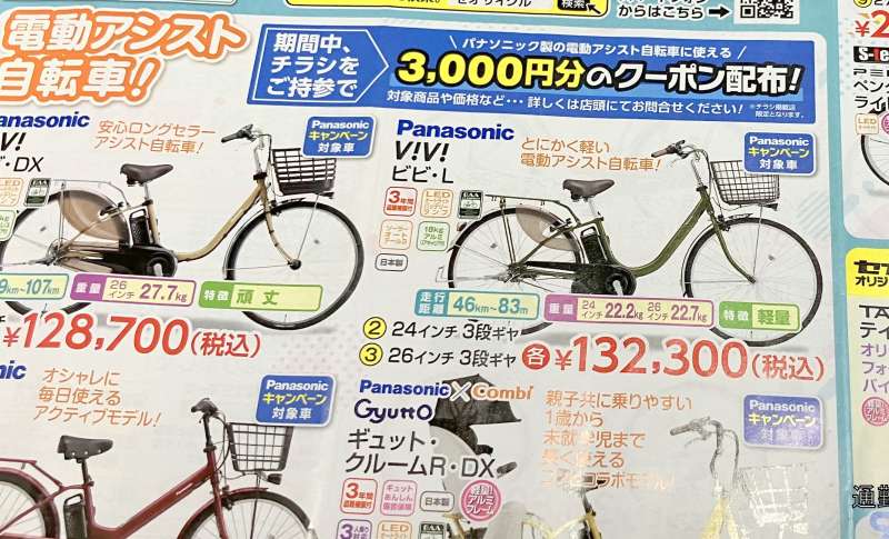 『パナソニック製の電動アシスト自転車に使える3000円分のクーポン配布!』中です