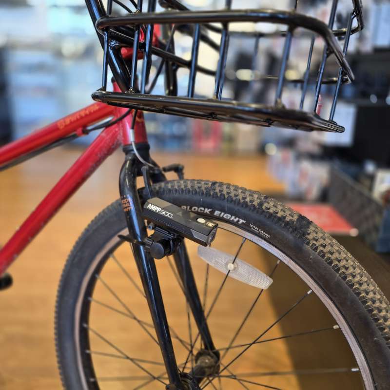 今までハンドルに付けていたライトはバスケットの下に移動