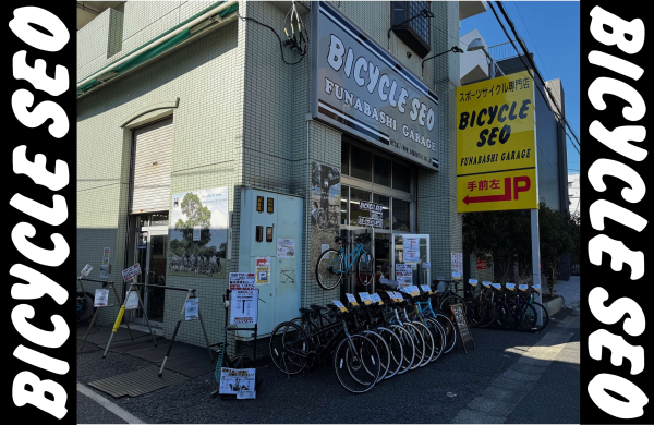 京成線「船橋競馬場駅」より徒歩5分。国道14号線(千葉街道)沿いのスポーツバイク専門店です。