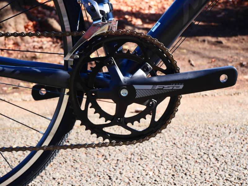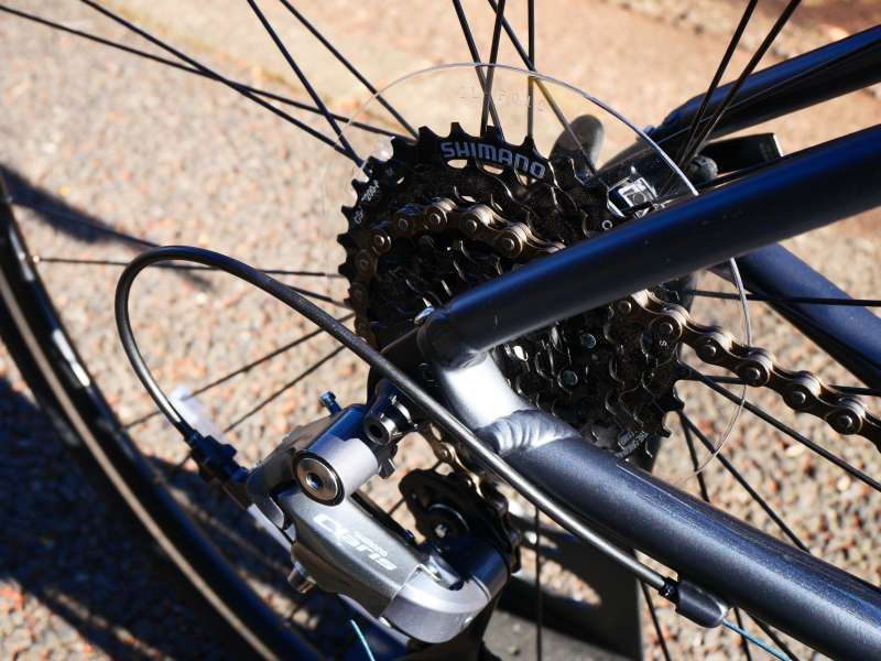 クランクセットを除き、メインコンポーネントには先述のシマノ・クラリスを採用しています。変速段数は、前2速(50-34T)×後ろ8速(11-32T)。