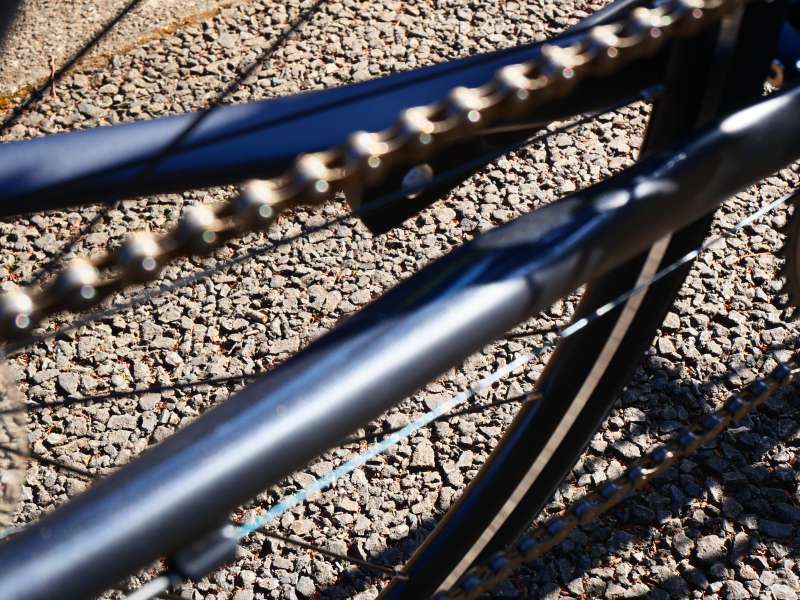 後輪をつなぐ部分にはカーボン素材は採用されていませんが、加工の難しいアルミ素材を扁平形状に成形することで、振動吸収性を高めています。