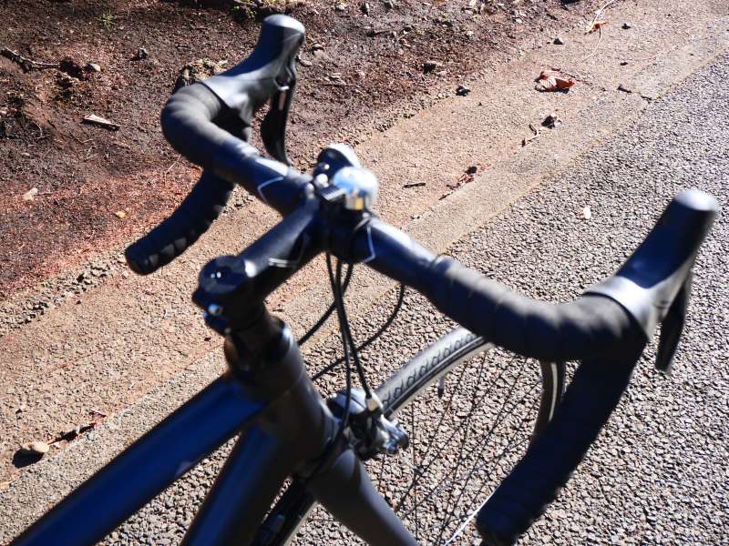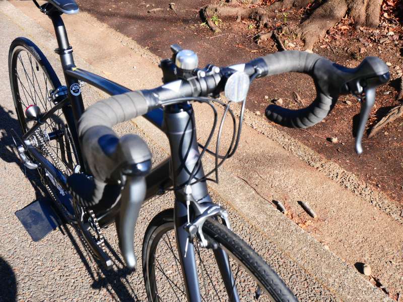 ハンドル幅は、芯‐芯で400mm(フレームサイズ50cm)です。また、ブレーキ/シフトレバーにはシマノ・クラリスのSTIレバーを採用しており、手元での変速操作も軽く、簡単に行えます。