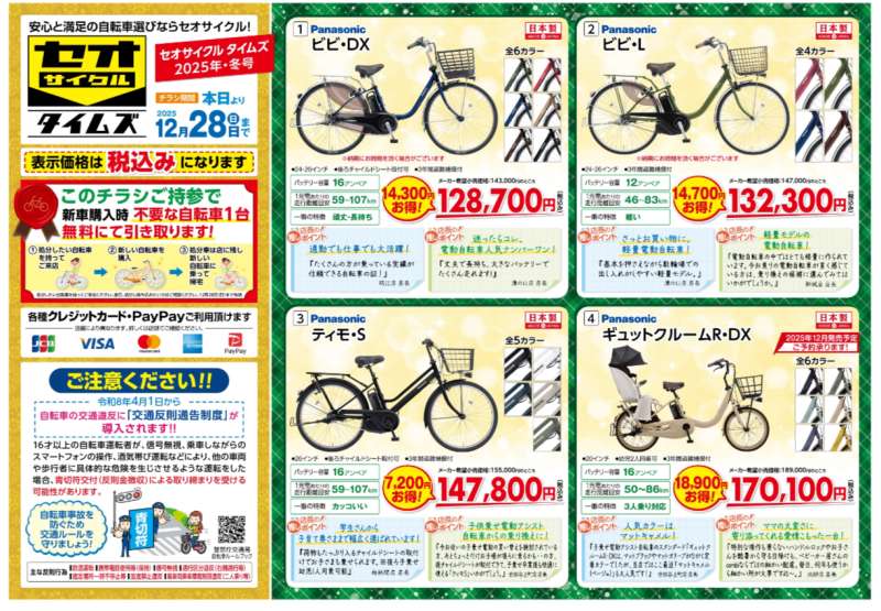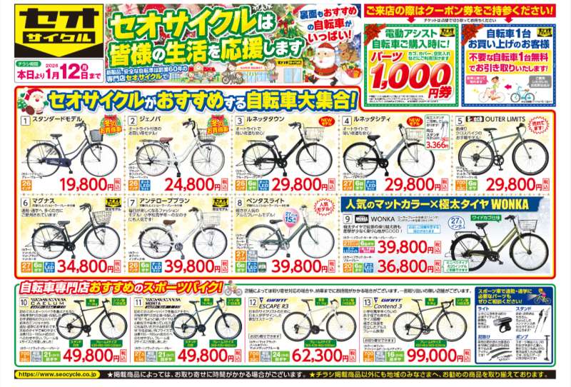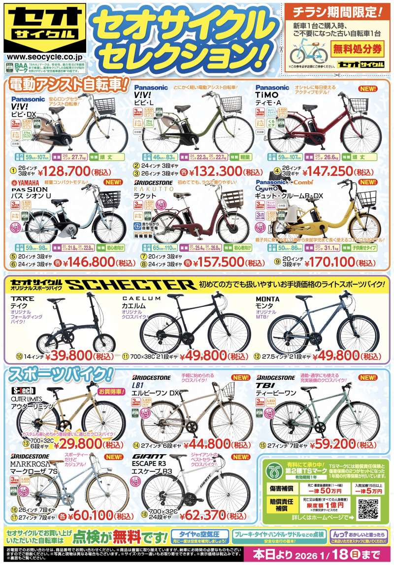 2025年11月28日よりウインターサイクルフェア開催中です!!いずれのチラシ価格も1/18まで!