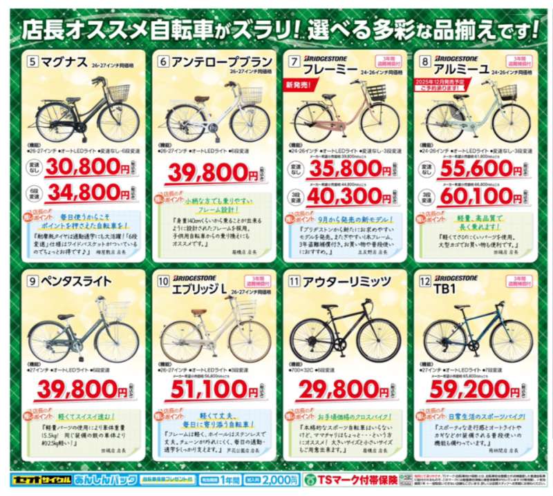 チラシ掲載品以外の店長が仕入れたお勧め自転車もお買い得になっております!ぜひいらしてください!!