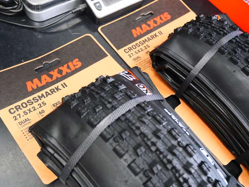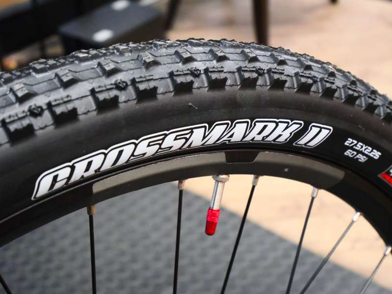 タイヤは、MAXXIS CROSSMARK II(27.5"×2.25")へ交換しました。元は27.5"×2.0"のスリックタイヤで、フレームクリアランスを考えると、このサイズが実質的な上限と考えられます。