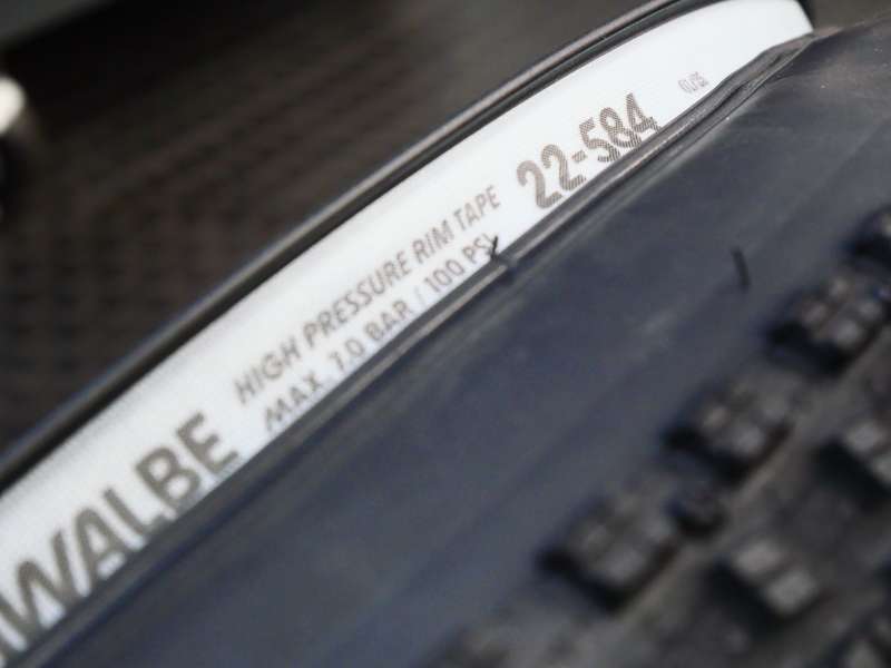 今回は、リムフラップに痕がはっきりと残っていたため、あわせて交換を行いました。リムフラップはリム内幅に合わせて選ぶ必要がありますが、元々装着されていたものは22mm幅でした。