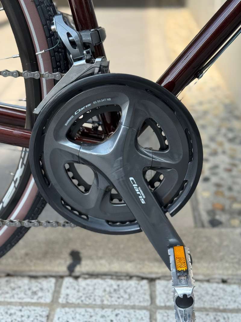 クランクがしっかりSHIMANOなのはサイクリングできつい登りに入った時に良さがわかります。ギヤガード標準装備なのも嬉しいですね!