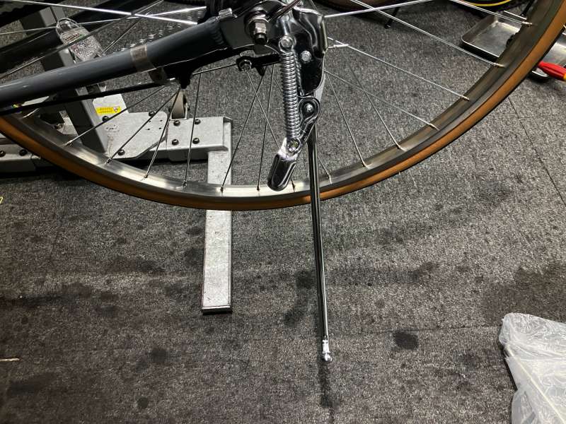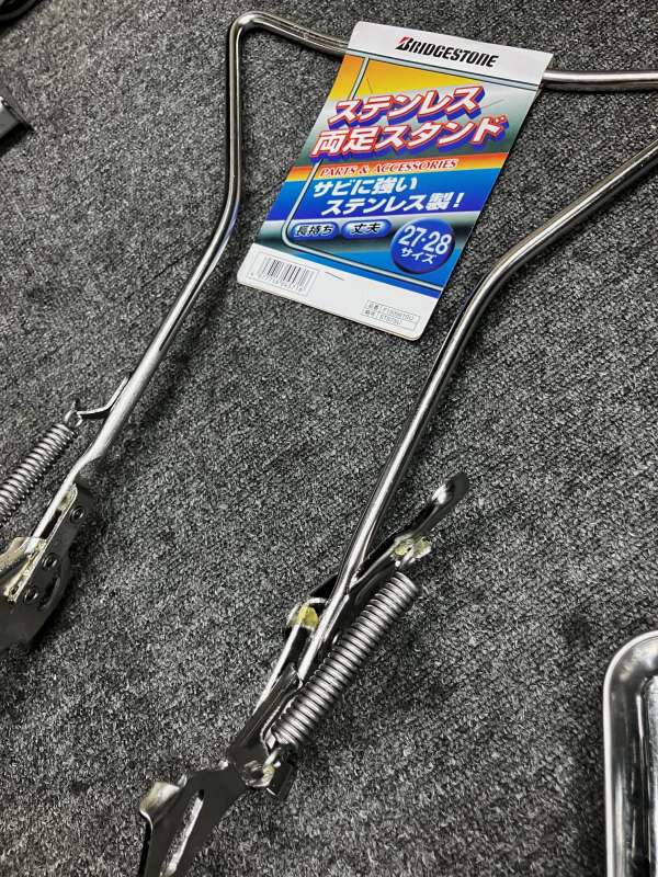 駐輪場で少しでも倒れにくくとのご要望でスタンド1本スタンドから両立スタンドに変更!