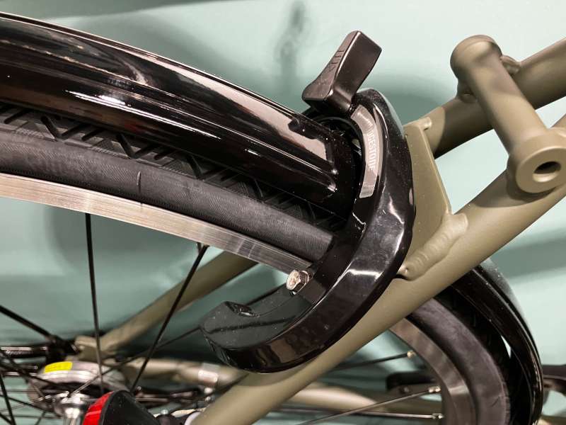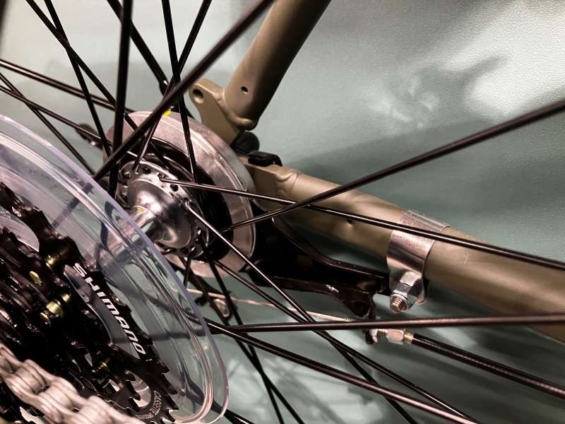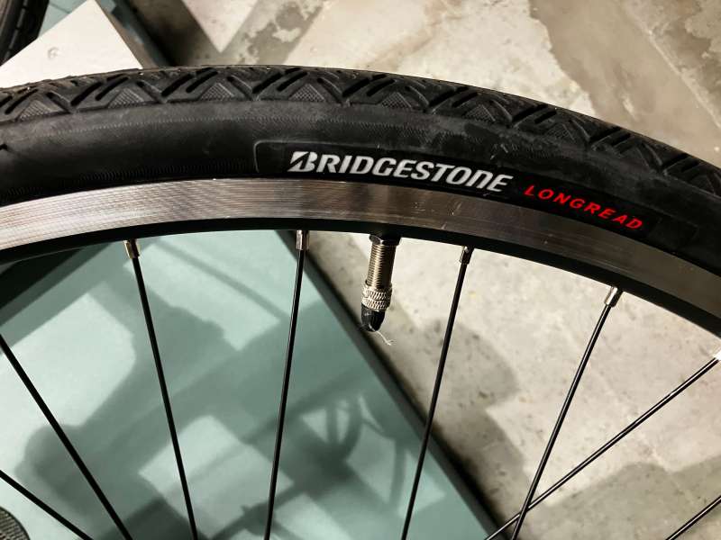 一般軽快車規格の27インチタイヤ。どこでも修理可能。空気の入れ口も一般軽快車と同じ英式なのでポンプも「ママチャリ」用でOK。空気入れのペースも一般軽快車と同じでOKです。月に1度が目安。「えっ⁉」って思った一般軽快車ユーザーさんは自転車屋に直行です(笑)。