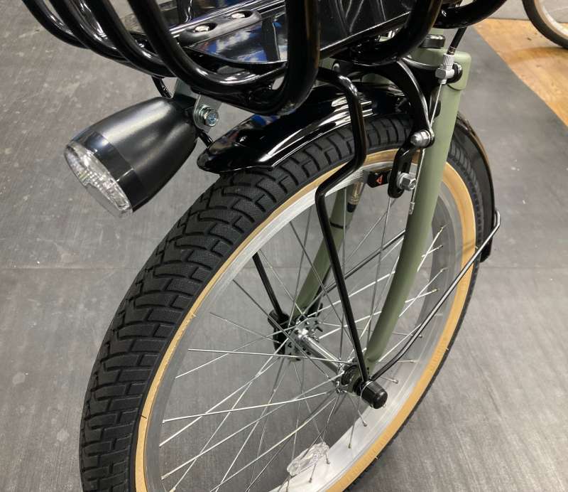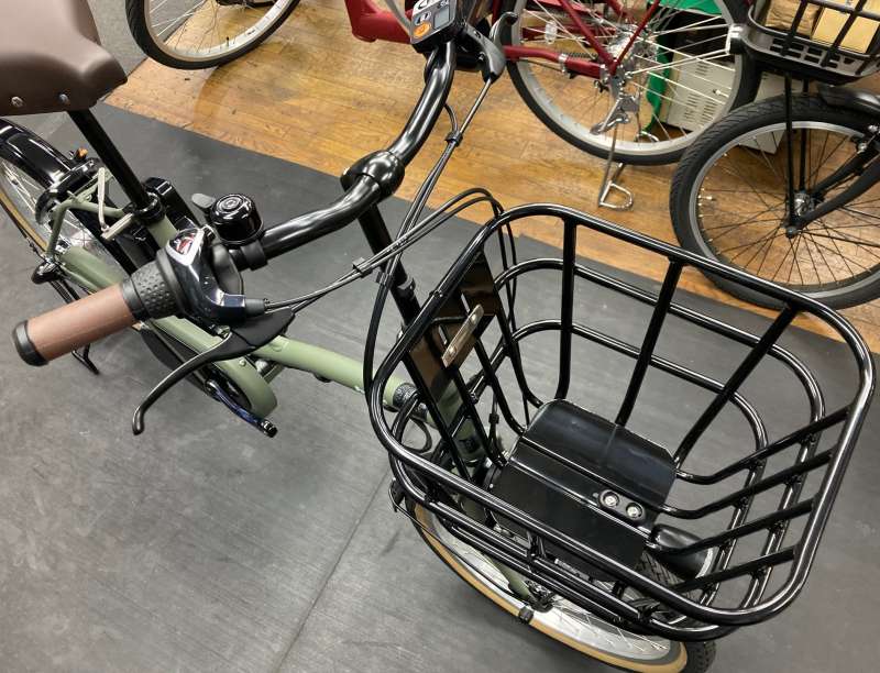 錆びないアルミチューブバスケット。駐輪場での置きやすさを考慮したスリムな横幅。