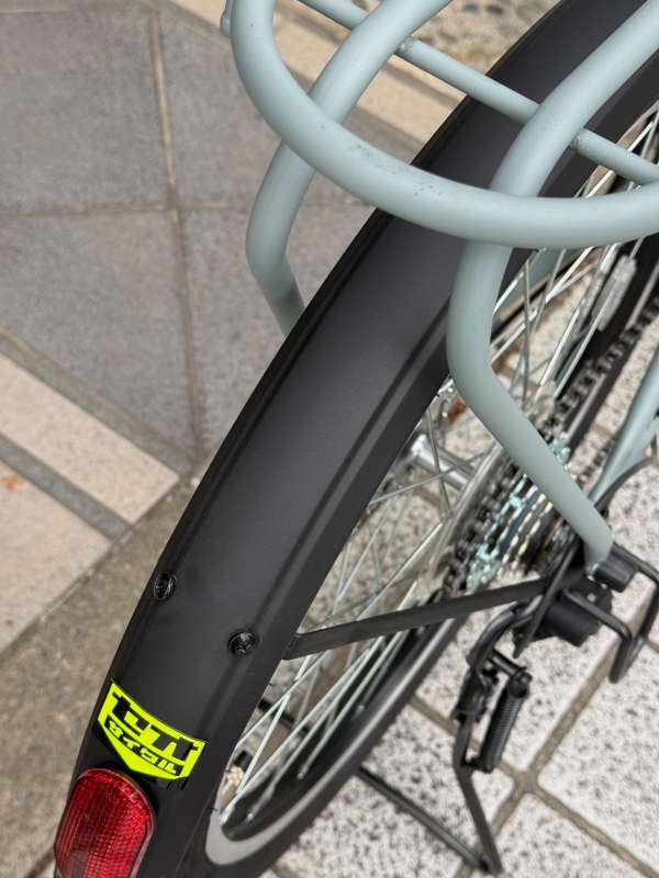 駐輪場であてられてもちょっとやそっとで変形しないスチール(鉄)製の泥除けです。