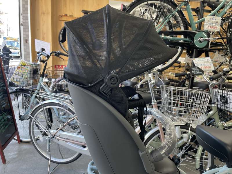 このリアチャイルドシートにはサンバイザー付きで成長に合わせて高さも調整可能です♪