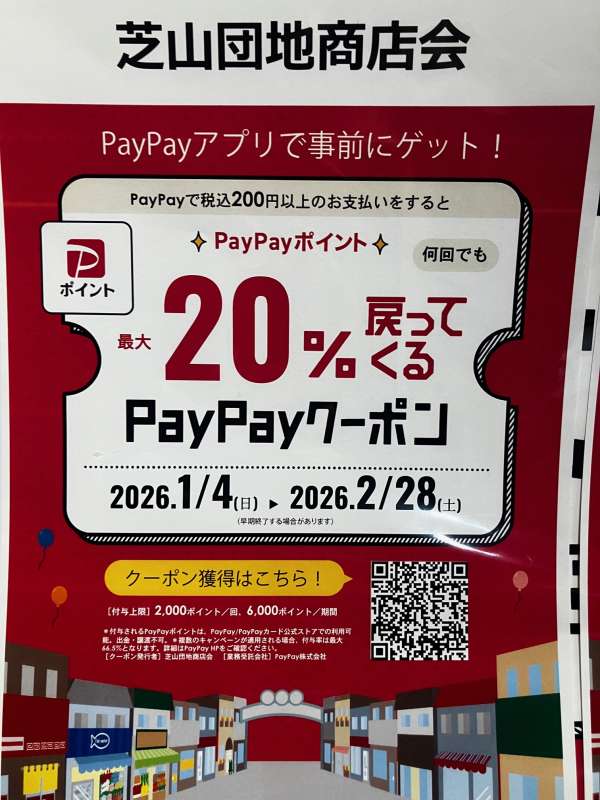 芝山団地商店会ではPayPayキャンペーン実施中でございます。
