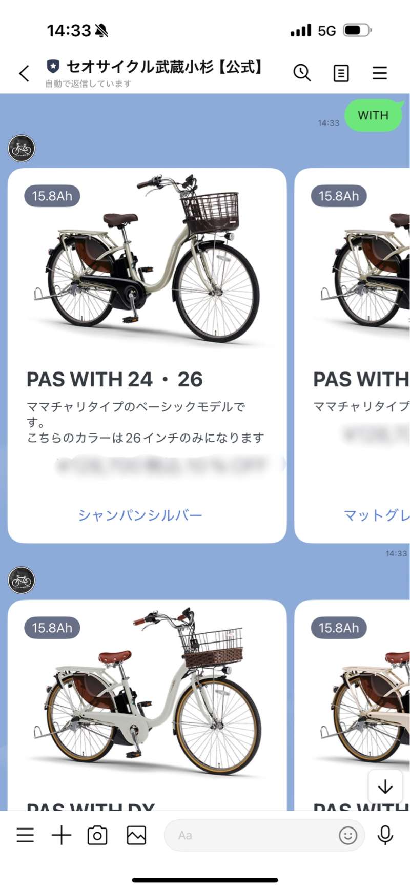 当店の公式LINEからワタクシ店長上野が『2番目におススメしても良い』と考えているヤマハの電動自転車の販売価格、カラーを見られるように致しました!※このリストにないアイテムは間違って買ってほしくないアイテムと考えていますので気になるお客様は『どのあたりがおススメしないんですか?』とお気軽にお問い合わせください!