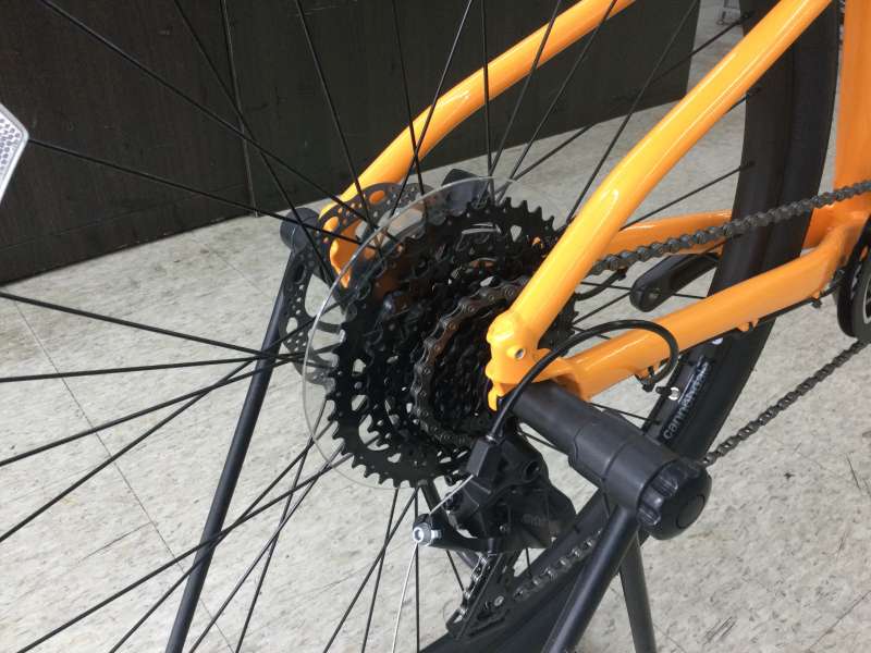 ギアは9速。かなりワイドなギアを使っているので、きつい坂道で楽に登れちゃいます。