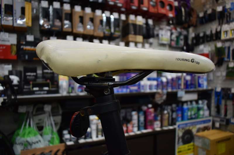 バーテープやサドルも劣化が進んでいます。ホワイトのカラーは見た目が明るく良いのですがサドルなどは日焼けにより黄ばむのを考慮しないとですね。