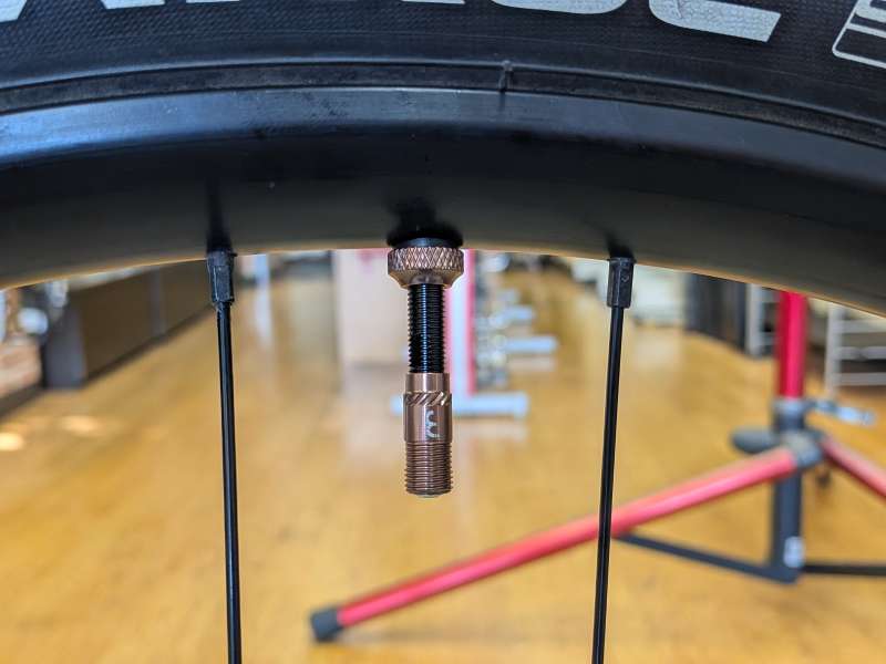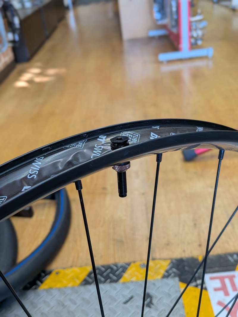 タイヤをはめてシーラントを適量入れます。コアキャップをネジネジして完成!
