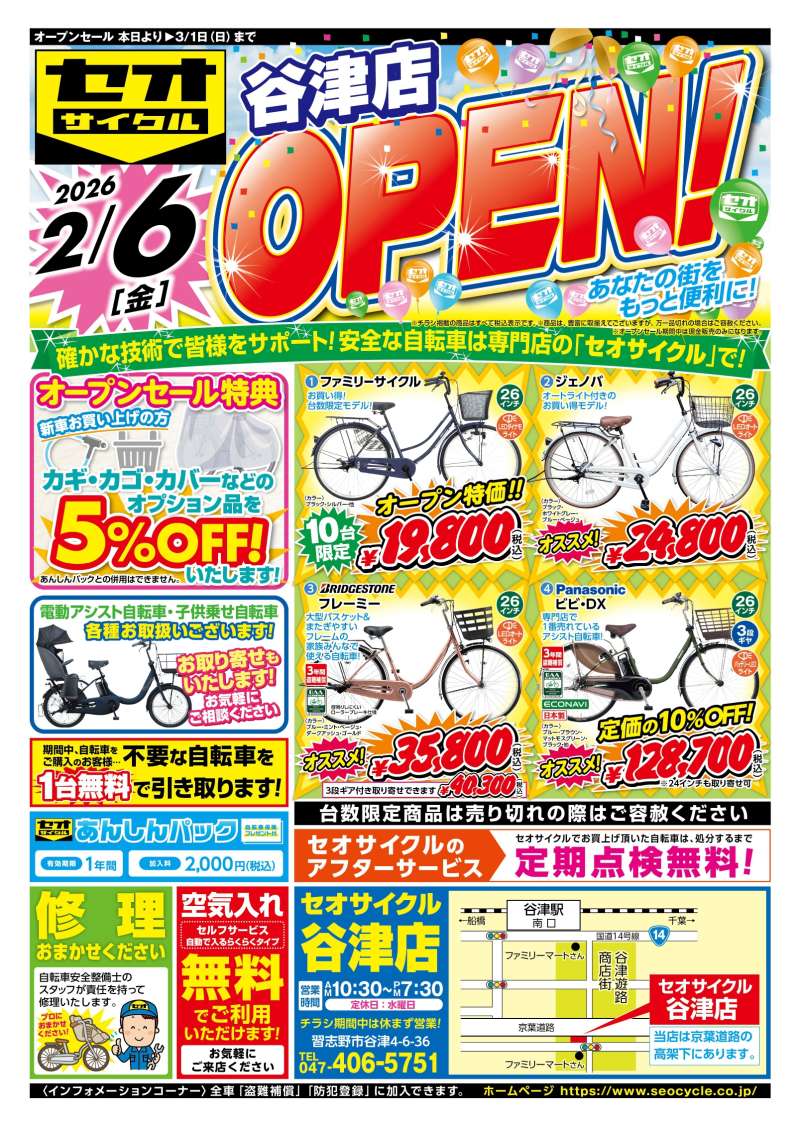 2月6日オープン!! 当店だけのOPENチラシもございます!↓↓ そういえば調子が悪かった自転車… そういえば自転車を新しくしたかった… 空気入れたかったけど近くになかった… などなどお困り事や相談がありましたら是非当店までお立ち寄り下さい! フォトギャラリー