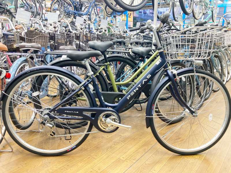 アルミ製のボディ、ハンドル、カゴを使用し、当店最軽量15kg台のシティサイクルです。