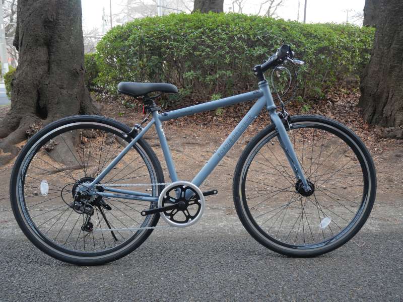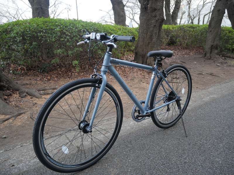 フレームにはスチール素材を採用し、車体重量は14.5kgです。アルミ製クロスバイクの平均的な重量である10〜12kg台と比較するとやや重めですが、一般的なシティサイクル(約18kg)よりは軽量に仕上がっています。