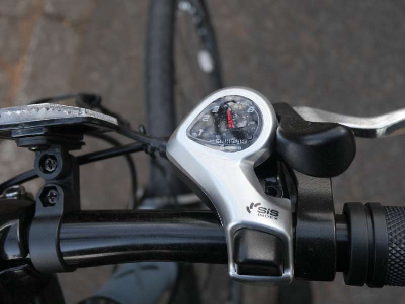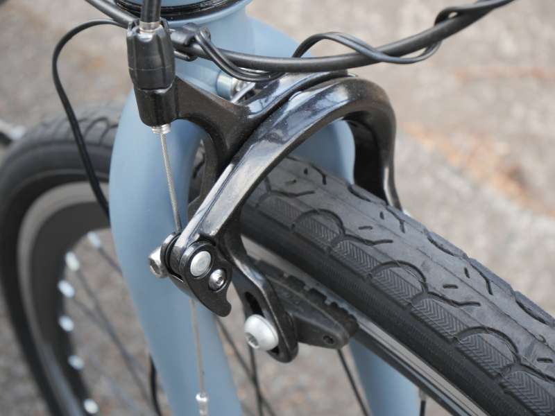 ブレーキはキャリパーブレーキを採用しています。クロスバイクで多く採用されているVブレーキと比較すると制動力は控えめですが、街乗りでの速度域では扱いやすく、細かなスピードコントロールがしやすいのが特長です。