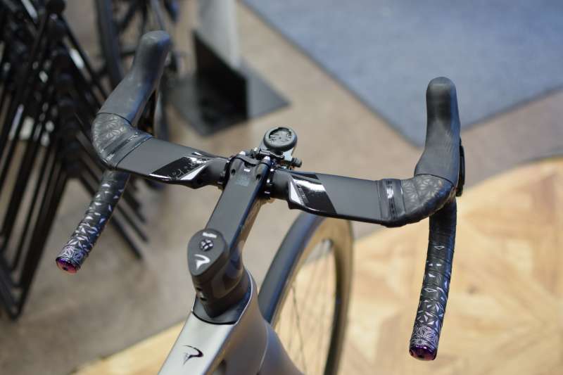 実際に装着してみるとシマノコンポーネントと合わせた時にSTIレバーからハンドル、ハンドルからSTIレバーへの握り替えが凄くスムースです。若干のフレアも付いて下ハンドルも握りやすく扱いやすさが向上します。