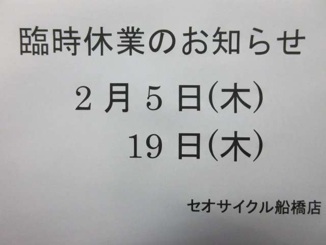 誠に勝手ながら2月5日19日(木)を臨時休業とさせていただきます。