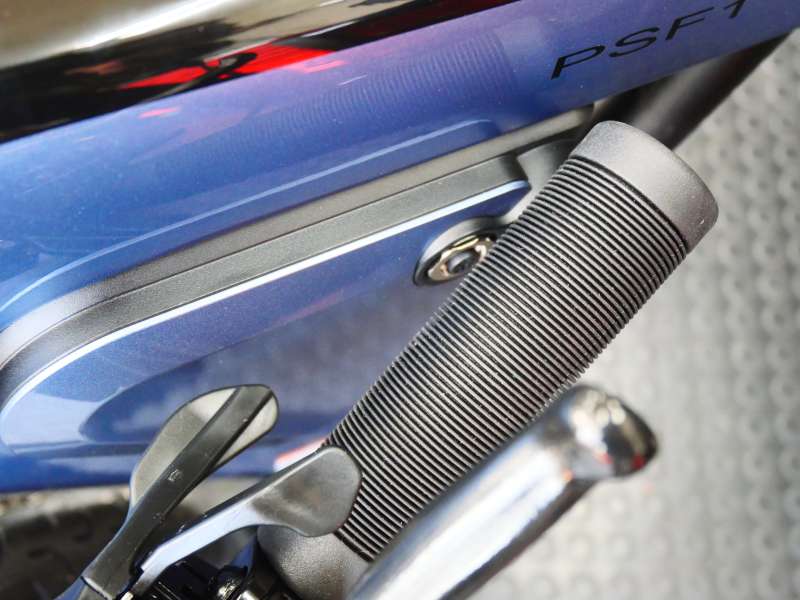 PSF1のアシストモードの操作はHMIディスプレイとハンドルの左側にあるスイッチで行います。HMIディスプレイはアシストモードの表示以外にも走行速度やバッテリー残量はもちろん、消費カロリー、ペダルの回転数、パワー計測まで出来るハイスペック仕様。